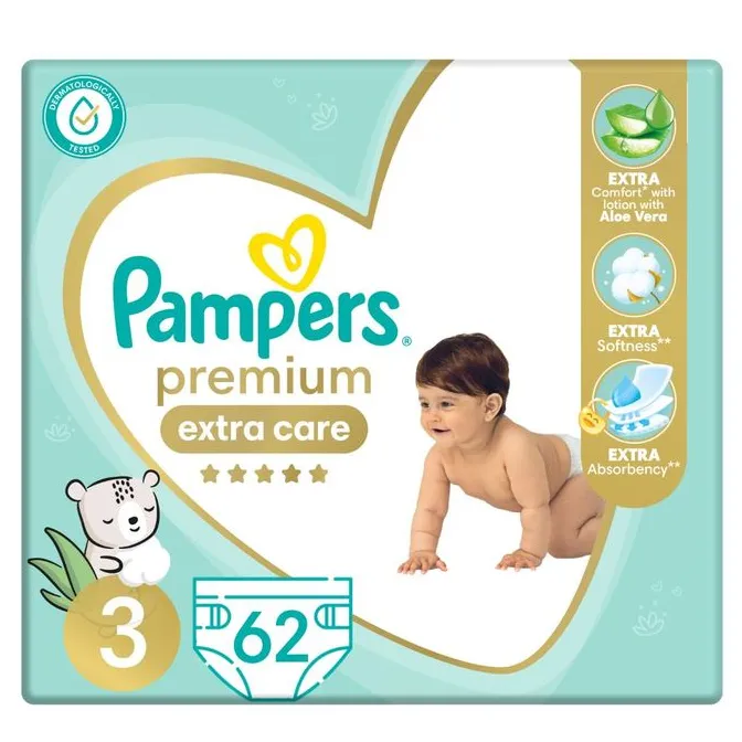 مميزات المنتج بامبرز | حفاضات بريميوم كير مقاس 3 | 62 قطعة