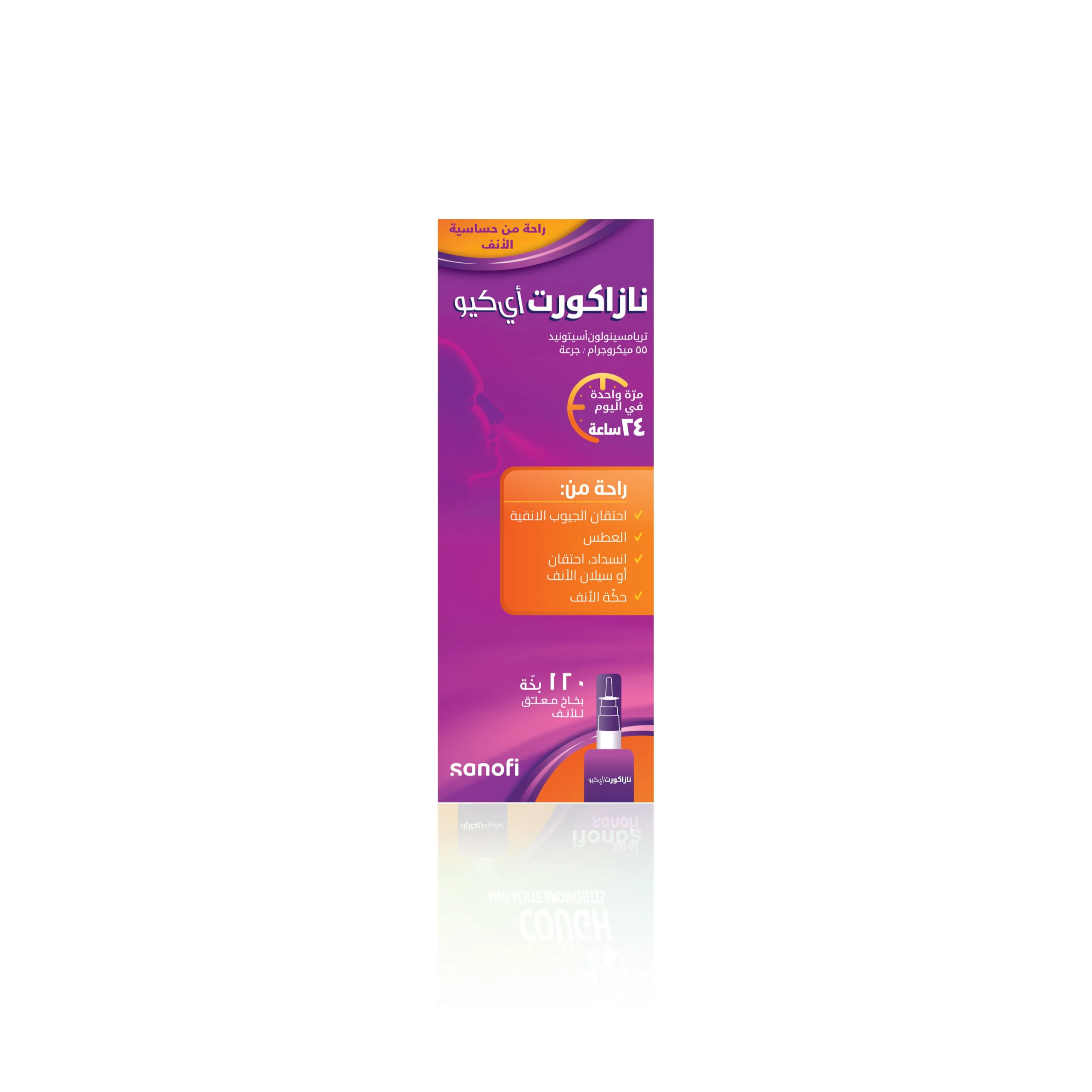 nasacort aq دواعي استعمال نازاكورت بخاخ يستعمل على شكل رذاذ انفي لعلاج العوارض الانفية لالتهاب الانف , العطاس والحكة وانسداد الانف واحتقان الانف او سيلانه.