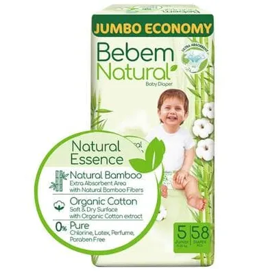 بي بم | حفاضات طبيعي جامبو جونيور مقاس 5 | 58 قطعة