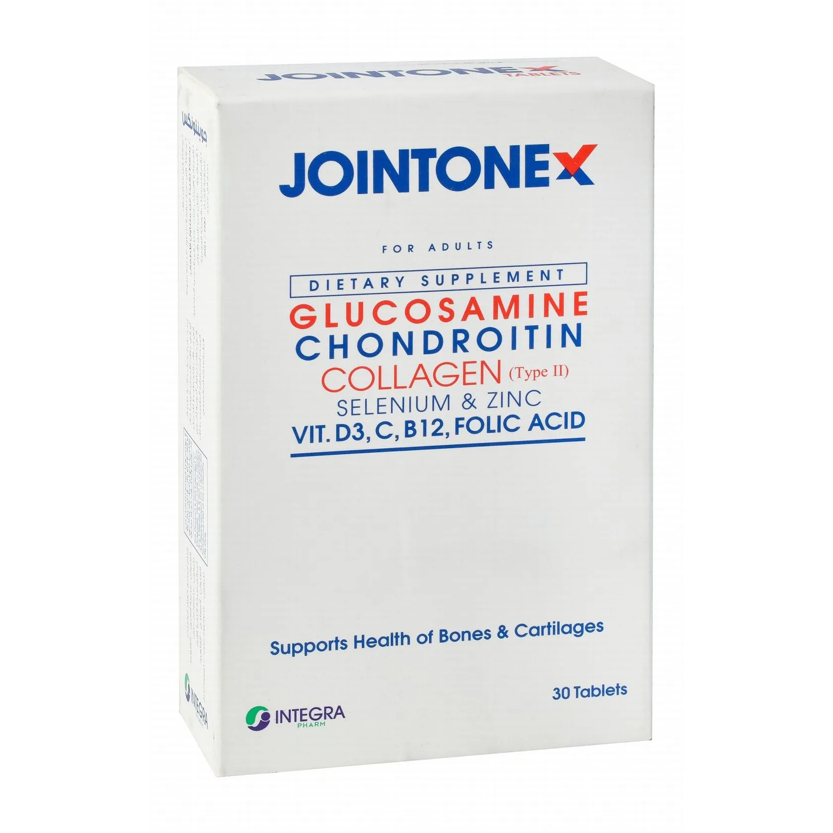 جوينتونكس (jointonex) مكمل غذائي يتميز بتركيبة متوازنة تساعد على دعم صحة المفاصل والعظام والعضلات.يحافظ على صحة المفاصل والغضاريف ويساعد في تقليل تآكلها.يخفف آلام المفاصل الناتجة عن الخشونة أو الالتهابات.يحسن مرونة وحركة المفاصل مما يساعد على الحركة بسهولة.يحتوي على الجلوكوزامين والكوندرويتين للمساعدة في إعادة بناء الغضاريف.غني بـالكولاجين الذي يقوي الأربطة والأوتار والأنسجة.يحتوي على فيتامين د3 والزنك والسيلينيوم لدعم صحة العظام والمناعة.يساهم في تقليل الألم والالتهاب وتعزيز الحركة والمرونة.