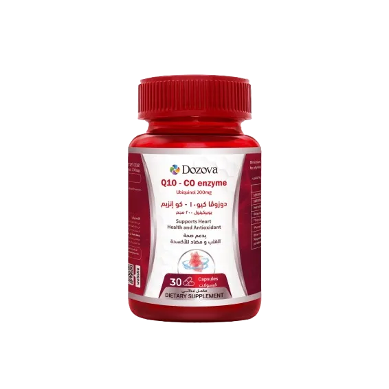 دوزوفا Q10 إنزيم مساعد يوبيكوينول 200 ملجماليوبيكوينول هو الشكل النشط من الإنزيم المساعد CoQ10.دوزوفا Q10 كو انزيم “يوبيكينول” هو مركب شبيه بالفيتامينات يلعب دورًا محوريًا في إنتاج الطاقة على مستوى الخلايا.يتواجد CoQ10 في جميع أنحاء الجسم، إلا أن إنتاجه يقل مع التقدم في العمر، مما ق يؤدي إلى اضطرابات في القلب والأوعية الدموية، وانخفاض الطاقة الخلوية، واضطرابات عصبية.أظهرت سنوات من الأبحاث العلمية أن CoQ10 يساهم في الحفاظ على صحة القلب والاوعية الدموية.يعمل CoQ10 كمضاد قوي للجذور الحرة في أغشية الخلايا وكذلك داخل الأوعية الدموية.