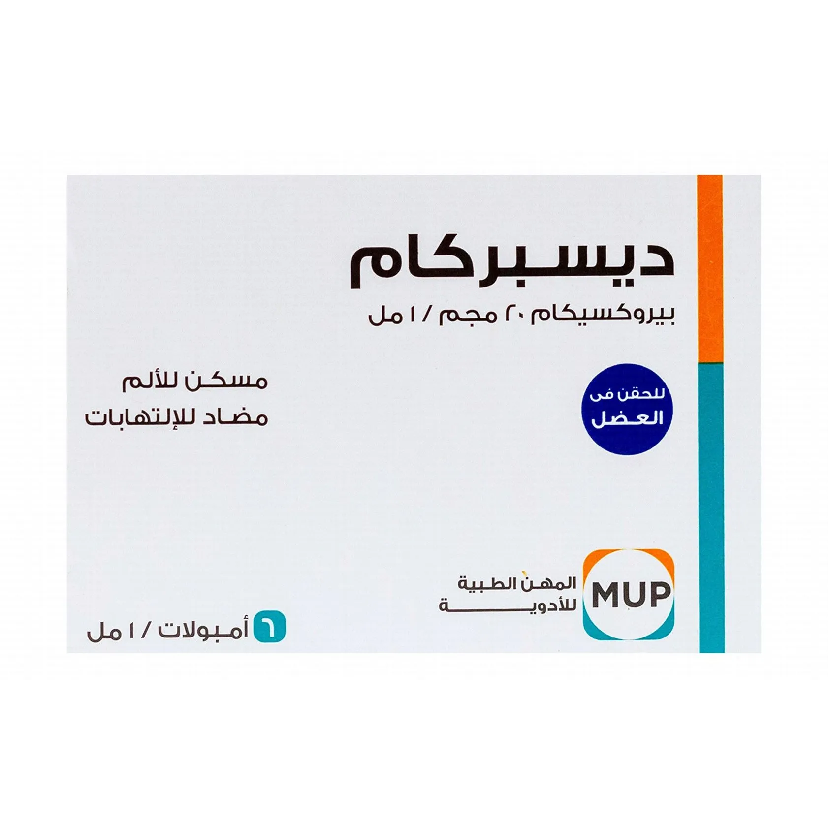 ديسبركام مسكن للآلام وخافض للحرارة يحتوي عقار ديسبركام على مادة بايروكسيكام والتي تنتمي إلى مجموعة أدوية مضادة للالتهاب الغير ستيرويدية والتى تعمل على تثبيط إنزيم الأكسدة الحلقي المسؤول عن حدوث الالتهابات والشعور بألم كما يعمل على خفض درجة حرارة الجسم وعلاج الحمى من خلال العمل على مراكز الحرارة في المخ.