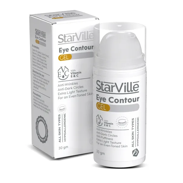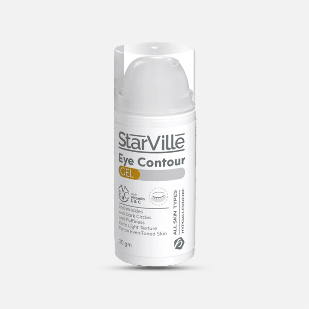starville eye contour طريقة استخدامهغسل البشرة بالغسول المناسب ونجفيفها جيداًيوزع جل ستارفيل على المنطقة حول العين والتدليك برفق حتى تمتصه البشرة.يُستخدم كونتور ستارفيل كل يوم مرة صباحاً ومرة مساءً.