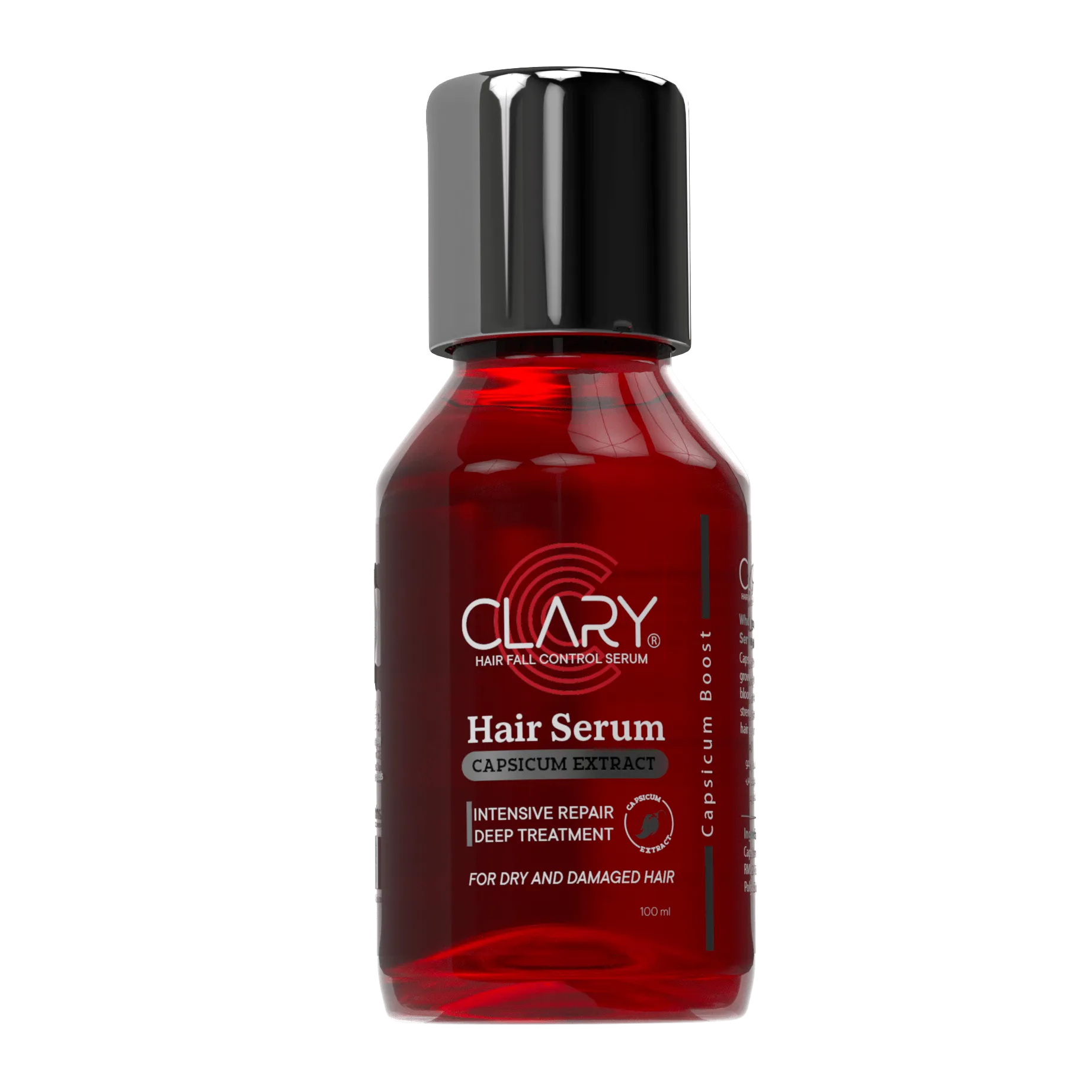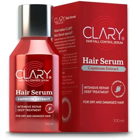سيرم clary كلاري صُمم خصيصا للشعر الذى يعانى من التقصف، والتلف، والبهتان، والتساقط، حيث تعمل تركيبته المميزة من خلاصة الفلفل الحار الذي يعمل على تحفيز الدورة الدموية في فروة الرأس وتغذية بصيلات الشعر .