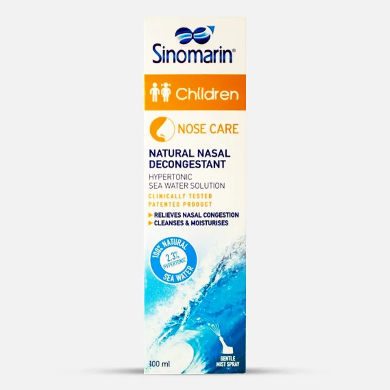 سينومارين Sinomarin بخاخ ماء البحر للاطفال 100 % طبيعي. مناسب للكبار و الأطفال من عمر 6 سنوات فما فوق.أمن تماما ولا يوجد له أعراض جانبية أو أعراض انسحابية بعد التوقف عن إستخدامه.معقم ولا يحتوي على أي مواد حافظة أو إضافات كيميائية.لا يسبب جفاف الأنف بعد الإستخدام يحمي من حالات التهاب الجهاز التنفسي العلوي ومضاعفاتها مثل التهاب وحساسية الأنف والتهاب الحلق والأذنين. يعمل على إزالة الضغط عن الجيوب الأنفية مما يساعد على استعادة الوظائف الطبيعية للأغشية المخاطية للأنف. يمكن إستخدامه لتسريع الشفاء بعد العمليات الجراحية داخل الأنف. يساعد على إزالة المخاط الزائد وفتح القنوات الأنفية في حالة إنسداد الأنف مما يساعد على التنفس بحرية.