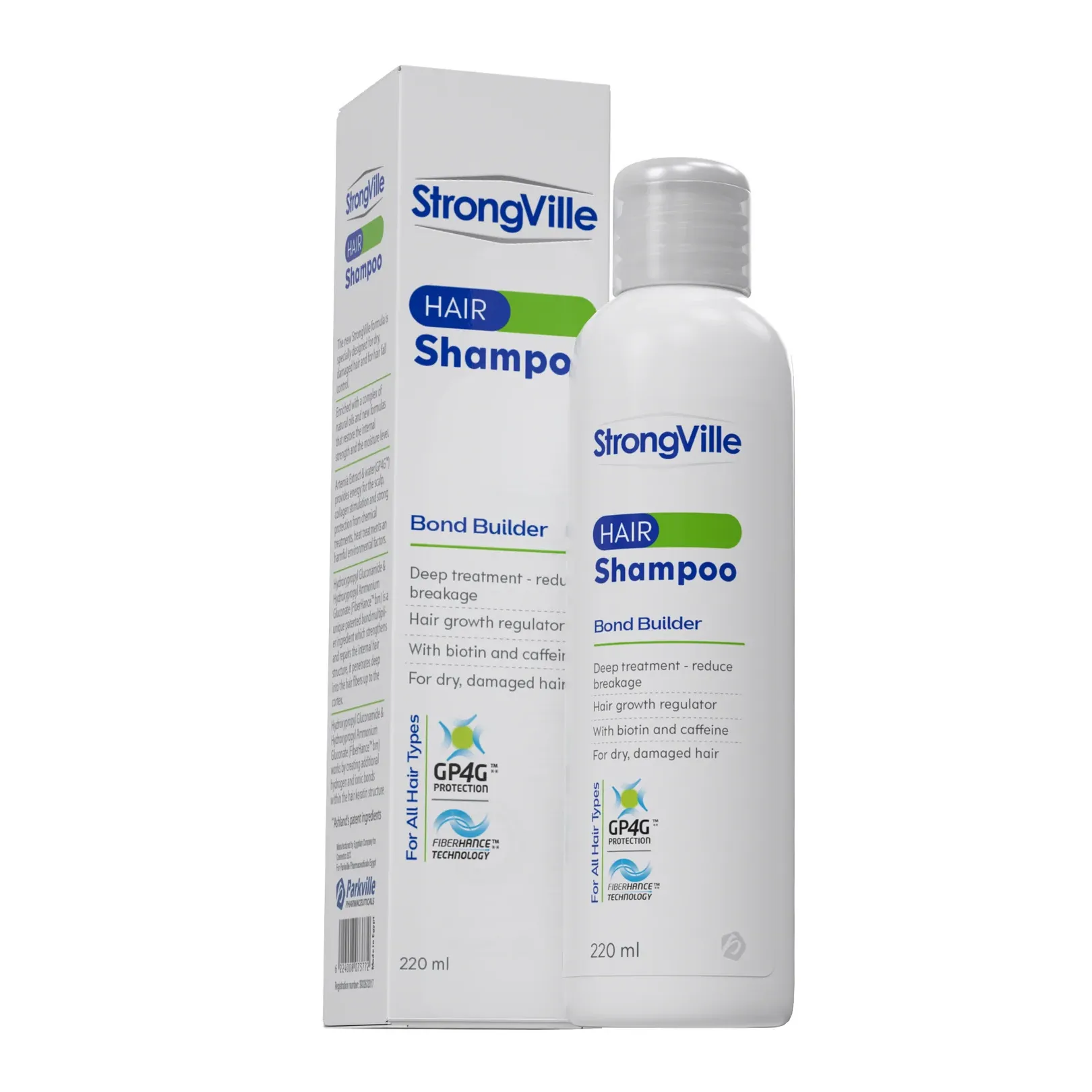 يتوفر شامبو سترونج فيل للشعر المعالج بالبروتين بحجم 220 مل.
