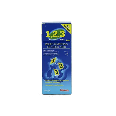 وان تو ثري شراب (one two three cold and flu syrup) يعتبر من أشهر الأدوية المستخدمة للأطفال والرضع لعلاج نزلات البرد والأنفلونزا وذلك لاحتوائه على عدة مكونات وهى مضاد للهيستامين ومسكن للألم وخافض للحرارة ومزيل للاحتقان وتساعد هذه المكونات فى تخفيف الأعراض المصاحبة للبرد والانفلونزا مثل احتقان الأنف والحمى والصداع والرشح والعطس.