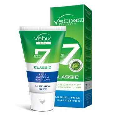 يتوفر vebix deodorant cream بحجم 25 جم وحجم 10 جم.