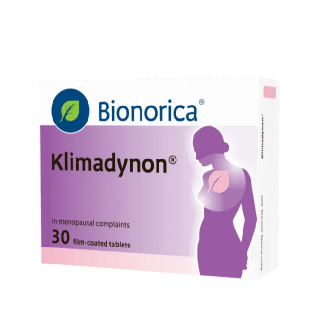 Klimadynon كليمادينون أقراص مكمل غذائي أقراص تعد بديلاً طبيعيًا لتحسين أعراض انقطاع الطمث من خلال تأثيرات الاستروجين النباتي لمستخلص الكوهوش الأسود، مما يساهم في تحسين نوعية الحياة أثناء انقطاع الطمث.