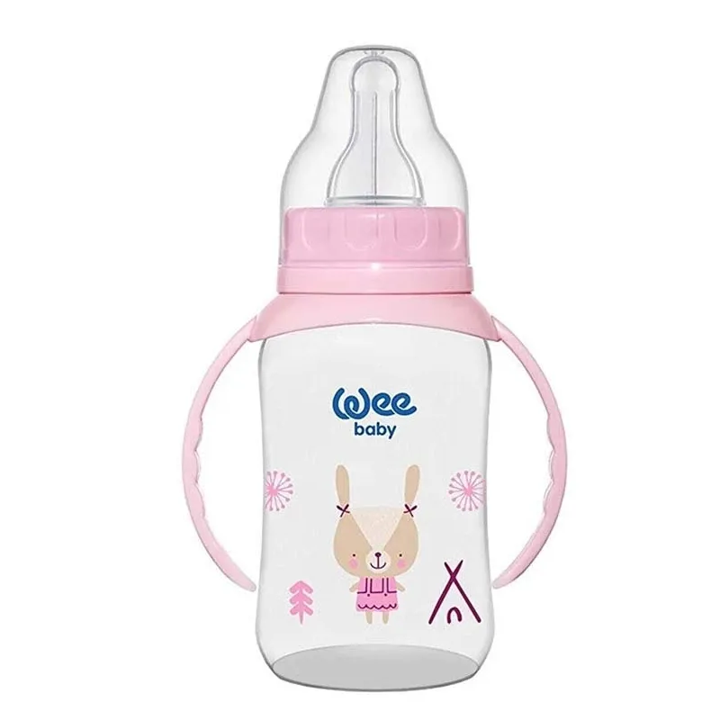 وي بيبي | ببرونة بلاستيك بيد من عمر 6-18 شهر بينك | 150مل